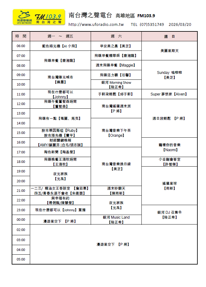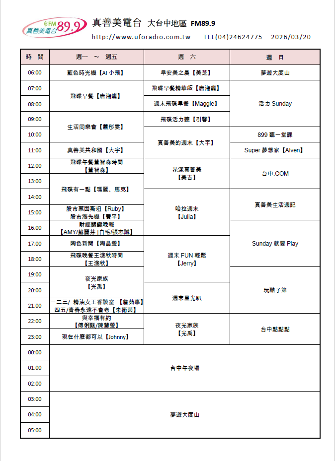 分台節目表